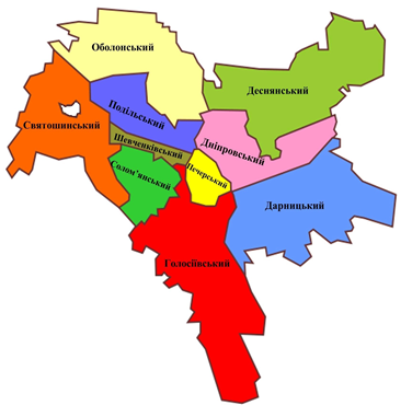 Рисунок 1. Адміністративно-територіальний поділ міста Києва | |