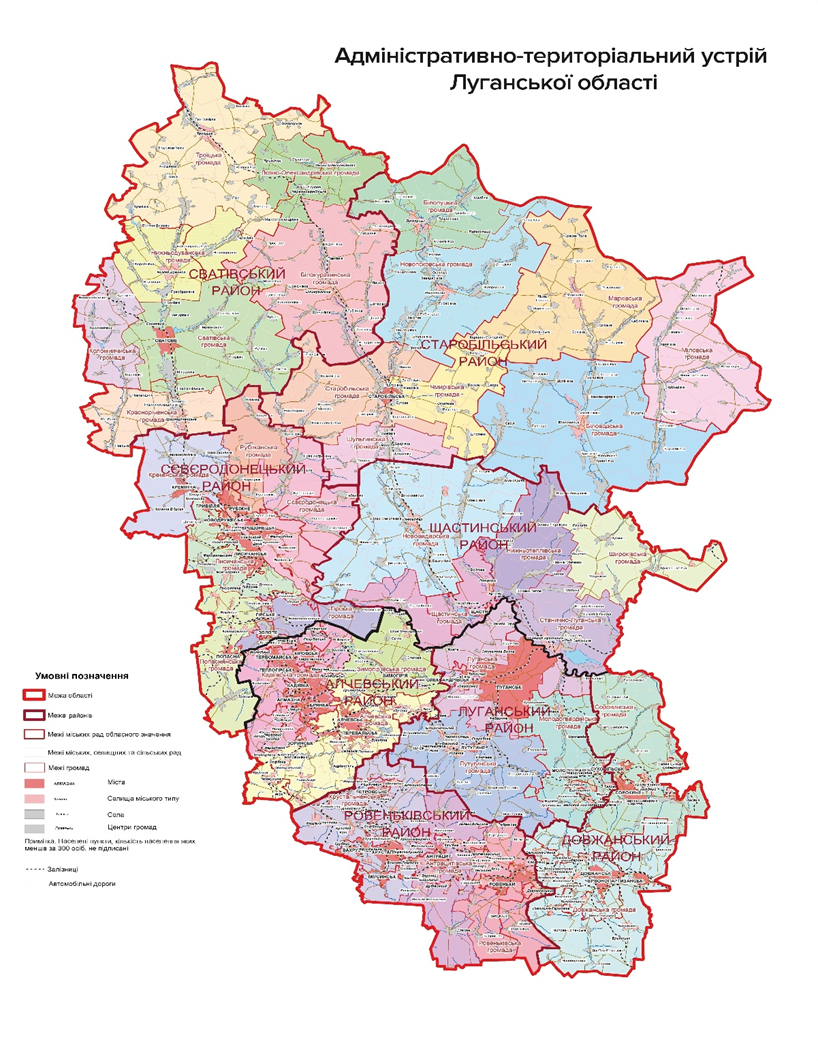 Рис. 1. Схема адміністративно-територіального устрою Луганської області