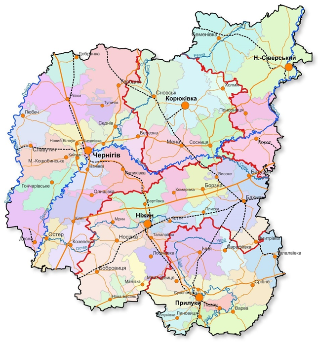 Рисунок 2. Адміністративно-територіальний устрій Чернігівської області