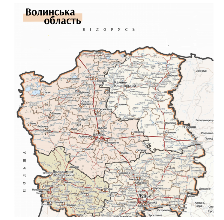 Джерело: Атлас адміністративно-територіального устрою Волинської області/ [За заг. ред. Остапенка П.] /Проєкт «Підтримка належного врядування в місцевих громадах як складової реформи децентралізації» Координатора проєктів ОБСЄ в Україні, Міністерство розвитку громад та територій України, Товариство дослідників України – Київ.: – 2021. – 16 с.