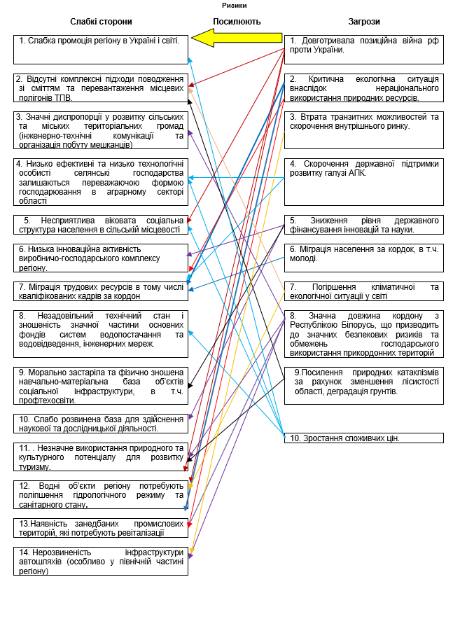 Ризики (визначені в результаті аналізу слабких сторін і загроз).