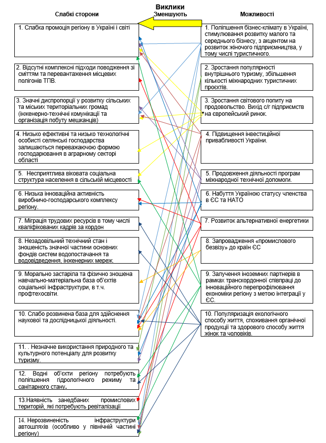 На основі проведеного SWOT-аналізу можна визначити ключові проблеми розвитку області, які перешкоджають гармонійному розвитку регіону, а саме: