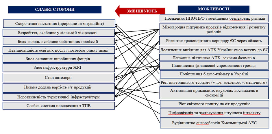 РЕЗУЛЬТАТИ SWOT-TOWS АНАЛІЗУ ДЛЯ ХМЕЛЬНИЦЬКОЇ ОБЛАСТІ